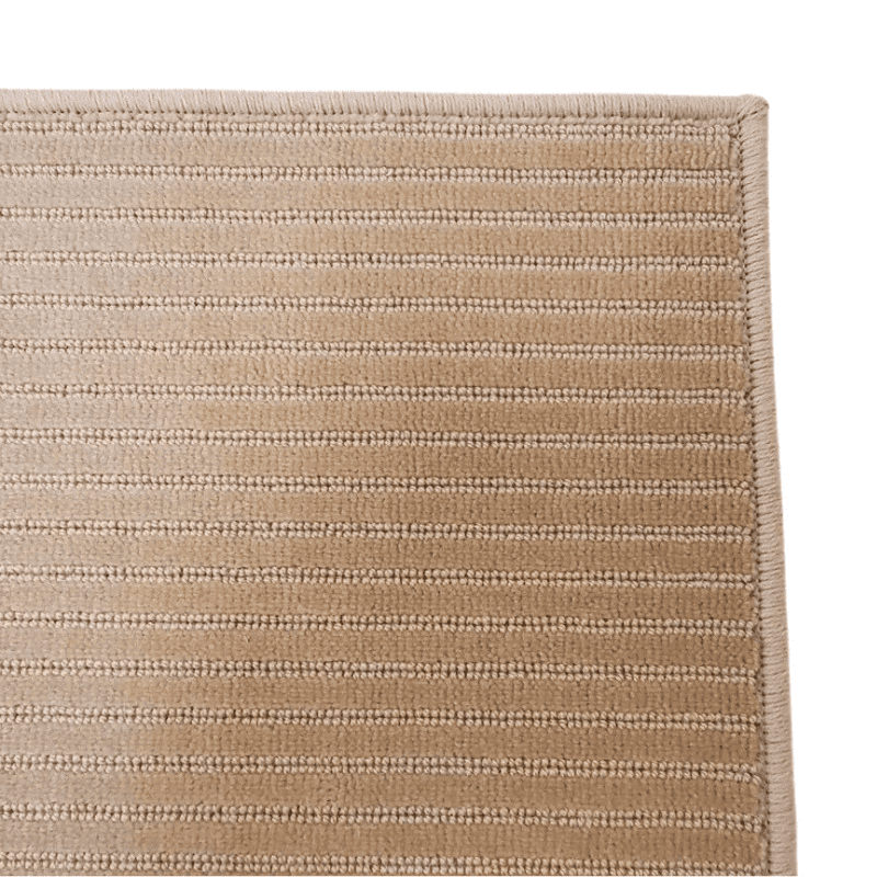 永遠の定番オーカー系の色調と美しくキレイに並ぶ ループとカットのボーダー柄(ストライプ)を無地の感覚で織り上げた モダンライフにピッタリのカーペットです。