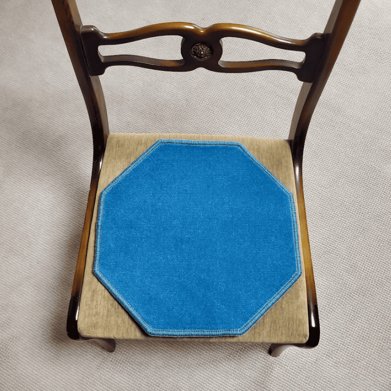 やわらかくラグジュアリーなウール100%で仕上げられたウールチェアパッドは 「織じゅうたん」 という伝統的なウィルトン織機で織り上げられ 幸福を呼びこむ八角形のパターンで製作しています。