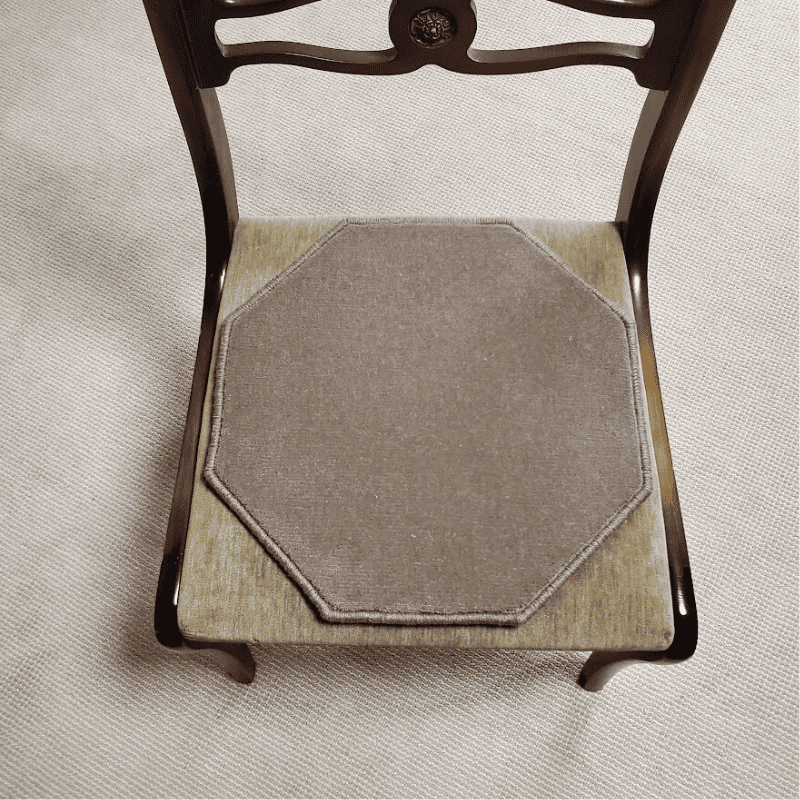 やわらかくラグジュアリーなウール100%で仕上げられたウールチェアパッドは 「織じゅうたん」 という伝統的なウィルトン織機で織り上げられ 幸福を呼びこむ八角形のパターンで製作しています。