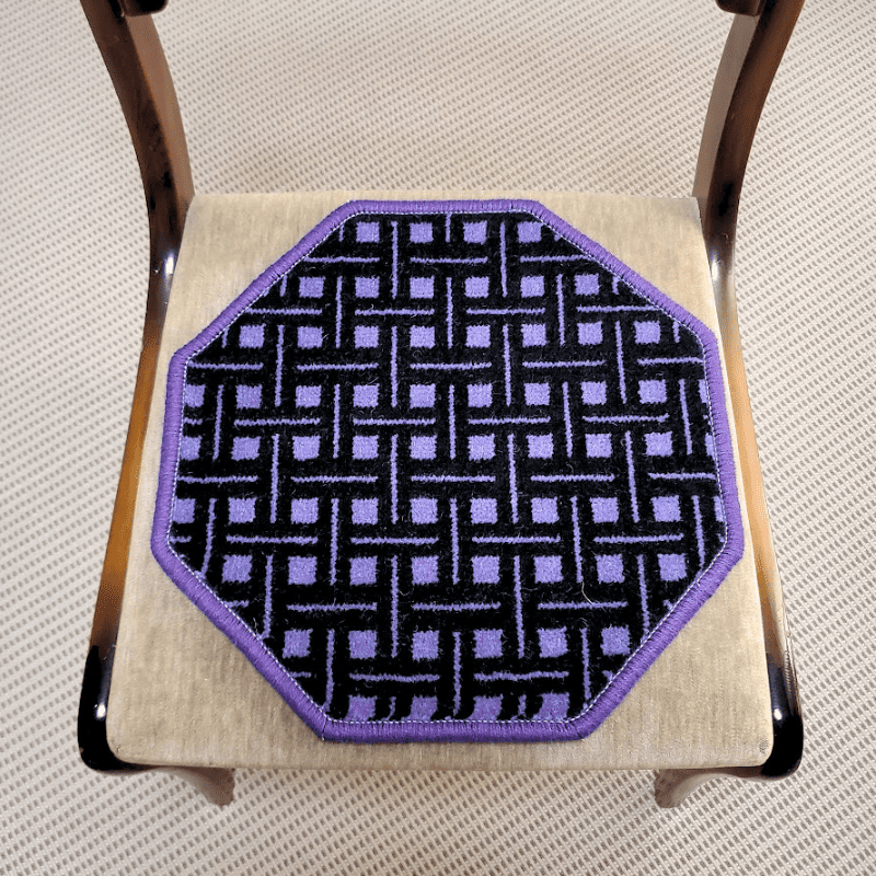 やわらかくラグジュアリーなウール100%で仕上げられたウールチェアパッドは 「織じゅうたん」 という伝統的なウィルトン織機で織り上げられ 幸福を呼びこむ八角形のパターンで製作しています。