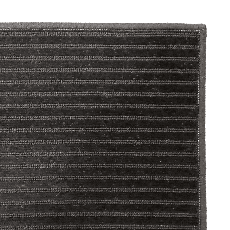 高級感あふれるモダンなブラック系の色調と美しくキレイに並ぶ ループとカットのボーダー柄(ストライプ)を無地の感覚で織り上げた モダンライフにピッタリのカーペットです。