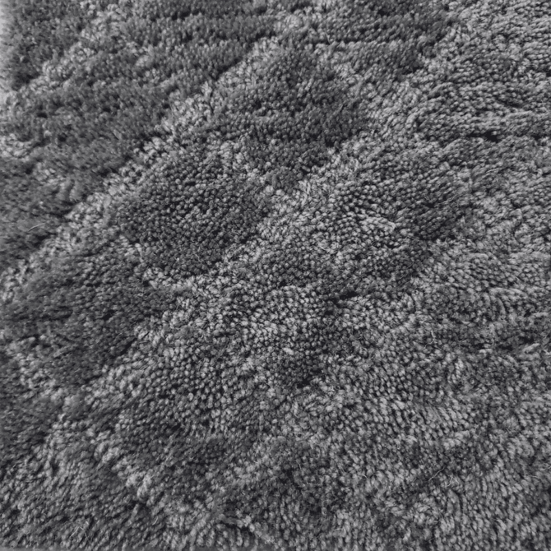 やわらかくラグジュアリーなウール100%で仕上げられた手刺じゅうたんは 「バスケット」 という伝統的な特殊技法でハイ&ローの立体感を際立たせた ひし形の格子パターンを表現しています。